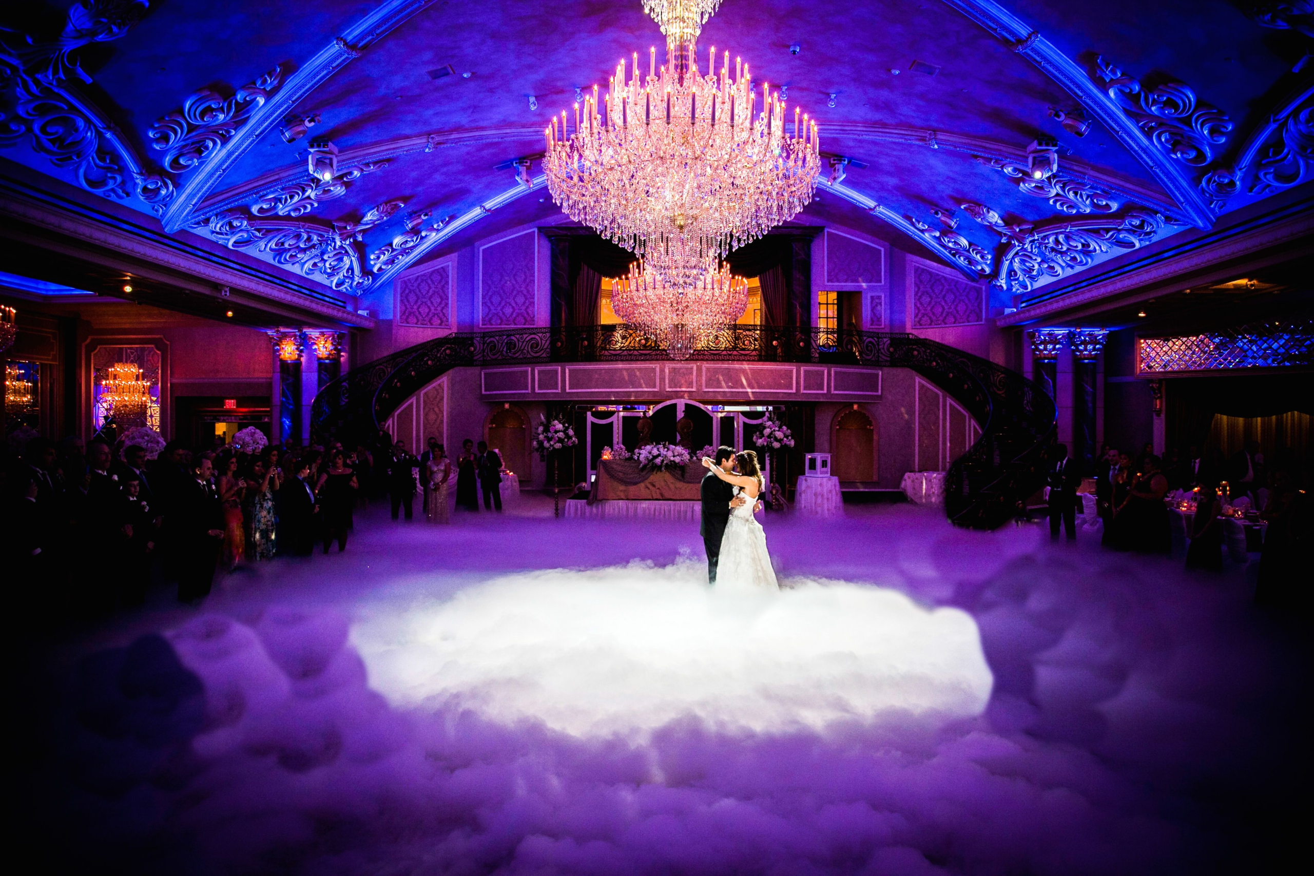 Create a magical, fairy-tale moment with low-lying fog that surrounds your first dance, making it look like you're floating on a cloud. Perfect for weddings and unforgettable photo memories.